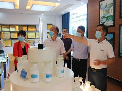 陸元鴻在公司展廳作了介紹,他風(fēng)趣地說(shuō),今天正好是科隆公司24歲生日,在這個(gè)有紀念意義的日子,各位領(lǐng)導到公司指導工作,是科隆公司的榮幸??坡」驹谥刭|(zhì)碳酸鈣行業(yè)深耕細耘20余年,獲得“中國碳酸鈣行業(yè)重鈣十強”、“全國五一勞動(dòng)獎狀”、“國家高新技術(shù)企業(yè)”、“國家知識產(chǎn)權優(yōu)勢企業(yè)”和“廣西重質(zhì)碳酸鈣工程技術(shù)研究中心”等殊榮,是《碳酸鈣分析方法》等國家標準及《工業(yè)用重質(zhì)碳酸鈣》等行業(yè)標準的起草單位。產(chǎn)品廣泛用于人造石、造紙、涂料、橡膠、塑料、油墨、建材及日用化工等行業(yè)。